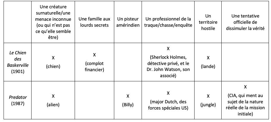 Ce tableau simple permet de mieux percevoir les influences réunies dans le film :